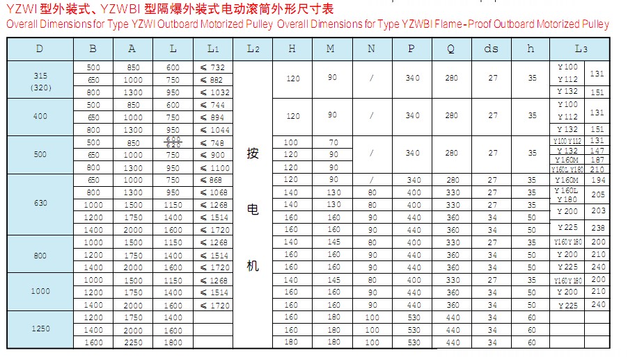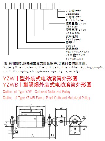 該產(chǎn)品是供各種固定式帶式輸送機(jī)、斗式提升機(jī)、卷?yè)P(yáng)機(jī)等配套的新型驅(qū)動(dòng)裝置。其內(nèi)部采用行星擺線減速機(jī)構(gòu),使電機(jī)外露與滾筒直聯(lián),具有承載能力大、過(guò)載能力強(qiáng)、傳動(dòng)平穩(wěn)、噪音低、壽命長(zhǎng),使用維修方便,操作安全可靠等優(yōu)點(diǎn)??蓾M足各種逆止、包膠等要求。隔爆外裝式電動(dòng)滾筒其隔爆標(biāo)志位dl、dllAT4。dl適合于有甲烷或煤塵礦井中,dllAT4適合于有I、IIA級(jí)T2~T4組爆炸危險(xiǎn)性混合物存在的場(chǎng)所,dllBT4適用于有I、IIA、IIB級(jí)T2~T4組爆炸危險(xiǎn)性混合物存在的場(chǎng)所。